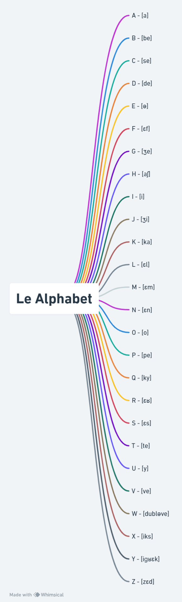 O alfabeto francês, assim como o português, é baseado no alfabeto latino e é composto por 26 letras. As letras são: