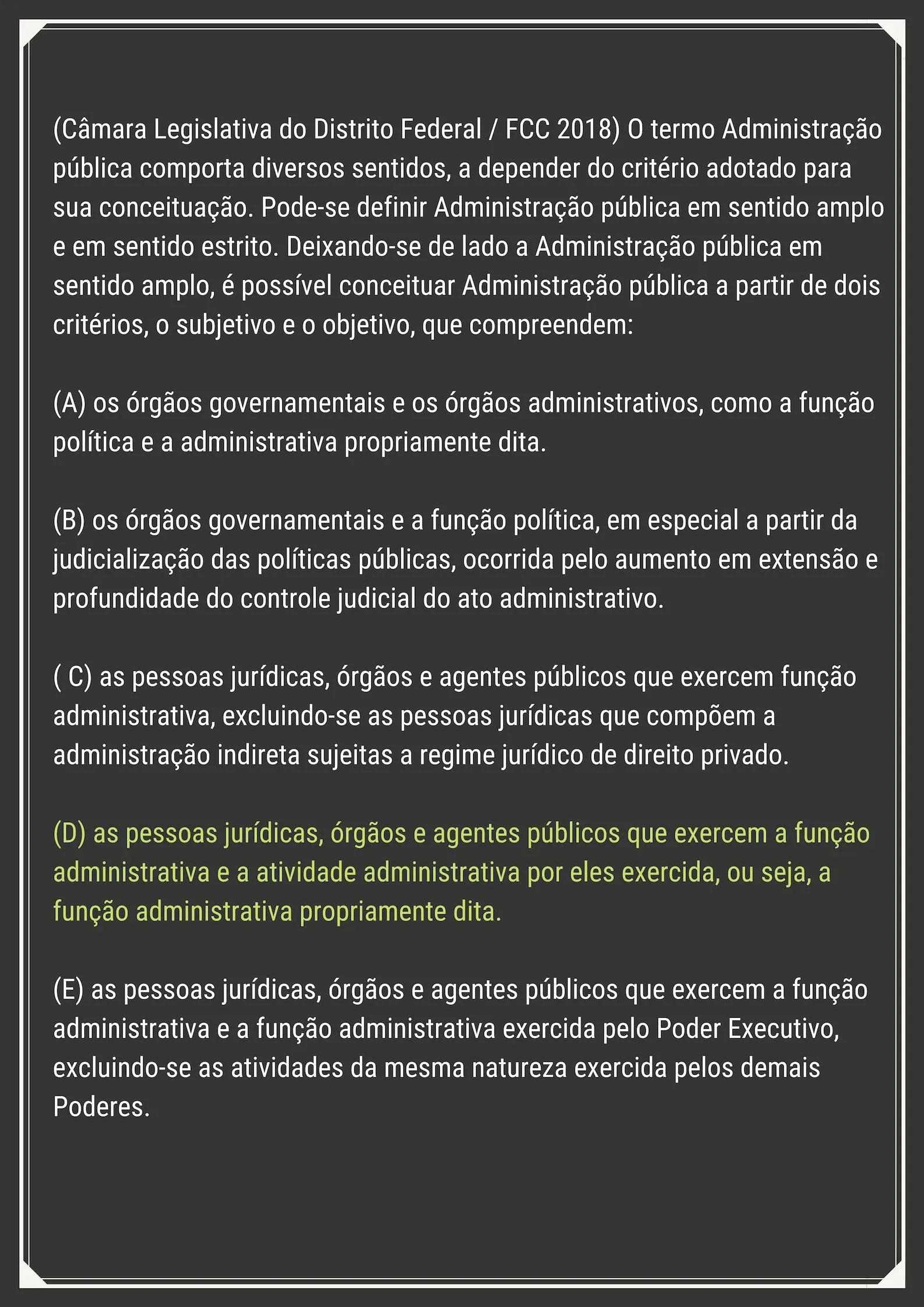 Agora revise outros conceitos importantes como a função, organização, poderes e sistemas administrativos. Estes temas também são recorrentes nas provas e importantes para seu bom desempenho em Direito Administrativo nos Concursos.