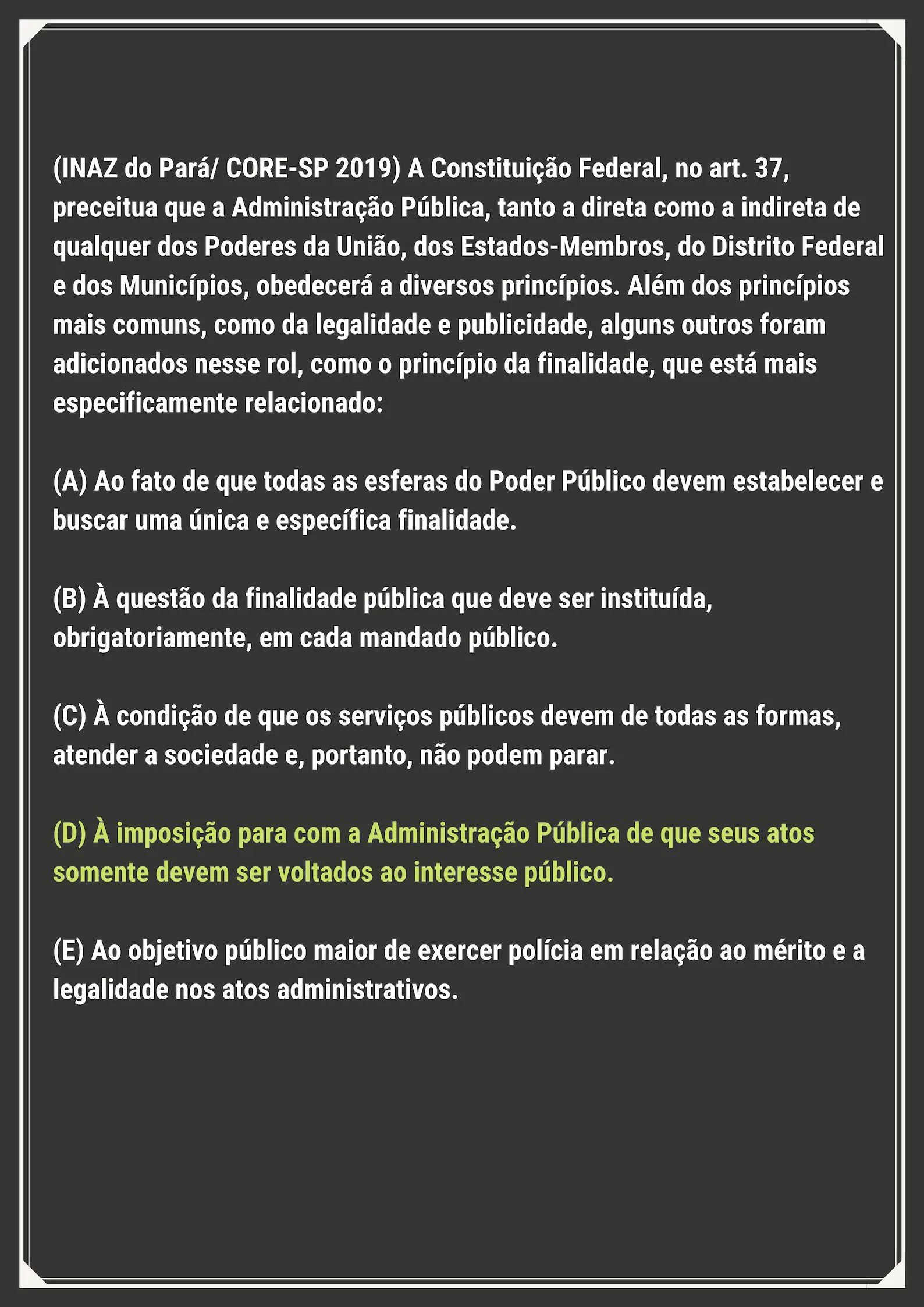 O caput do art. 37 da Constituição Federal elenca os cinco princípios básicos da Administração Pública.